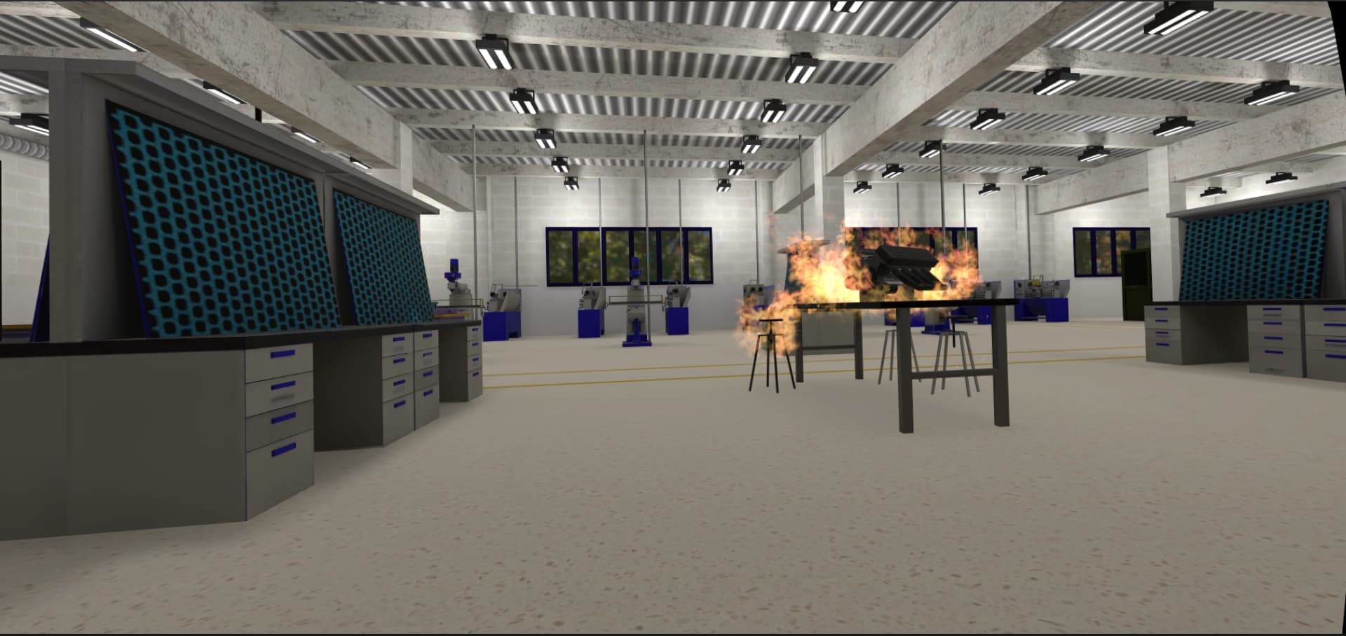 e-Xtinguisher incluye más de 58 escenarios inmersivos que recrean incendios en viviendas, industrias, oficinas, almacenes y otros entornos. Algunas situaciones exigen el uso de Bocas de Incendio Equipadas (BIE), mientras que otras se centran en la toma de decisiones bajo presión. Cada experiencia está diseñada para reforzar habilidades prácticas y mejorar la capacidad de reacción ante emergencias reales. Además, desarrollamos escenarios personalizados para adaptarnos a los riesgos específicos de cada cliente.
